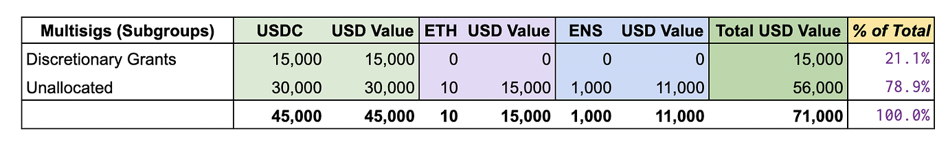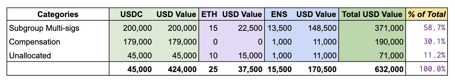 Funding in this category is related to the two Meta-Governance subgroup multi-sigs. These have been reviewed and approved by the Meta-Gov Stewards.