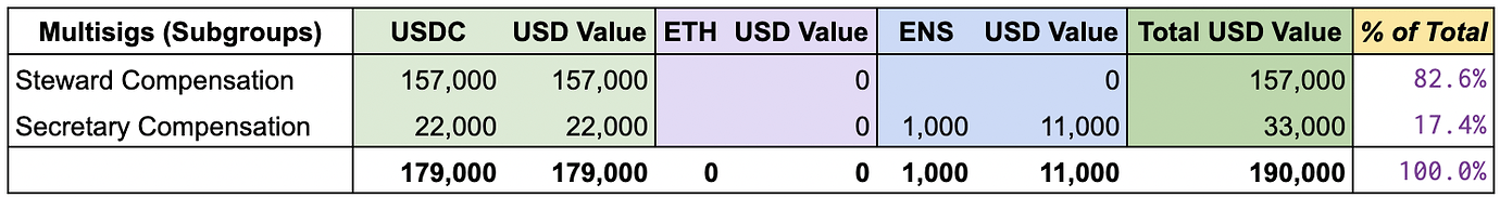 Funding in this category relates to compensation for DAO stewards and secretary.